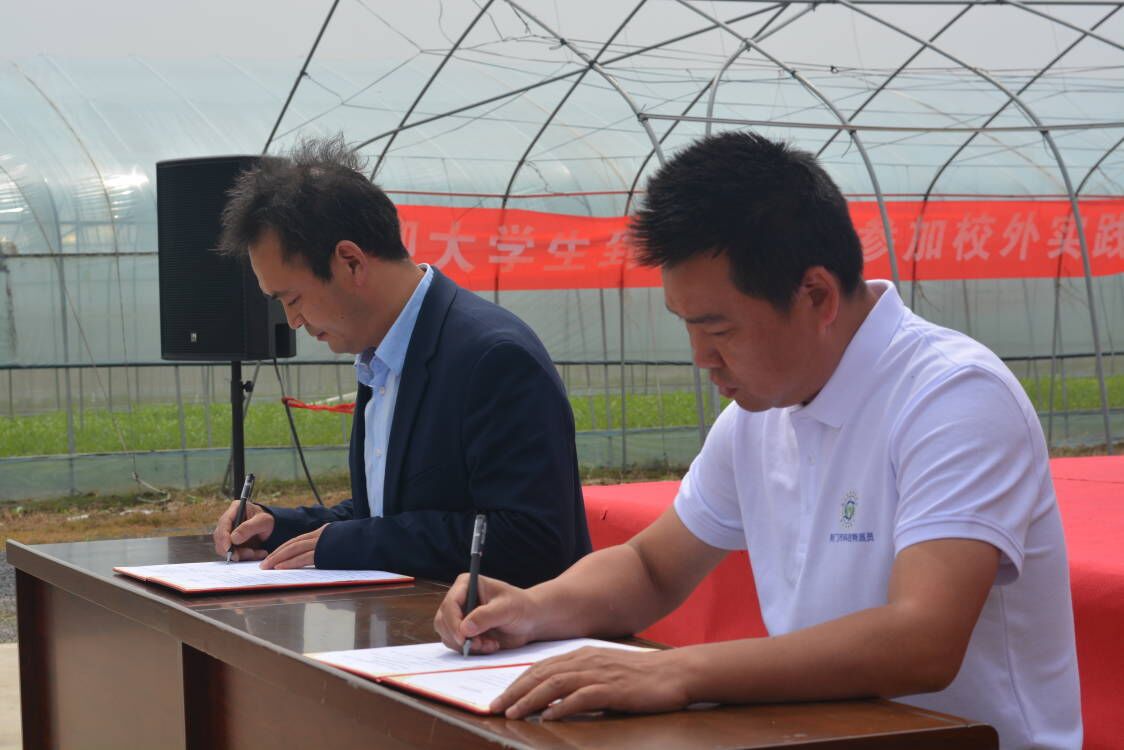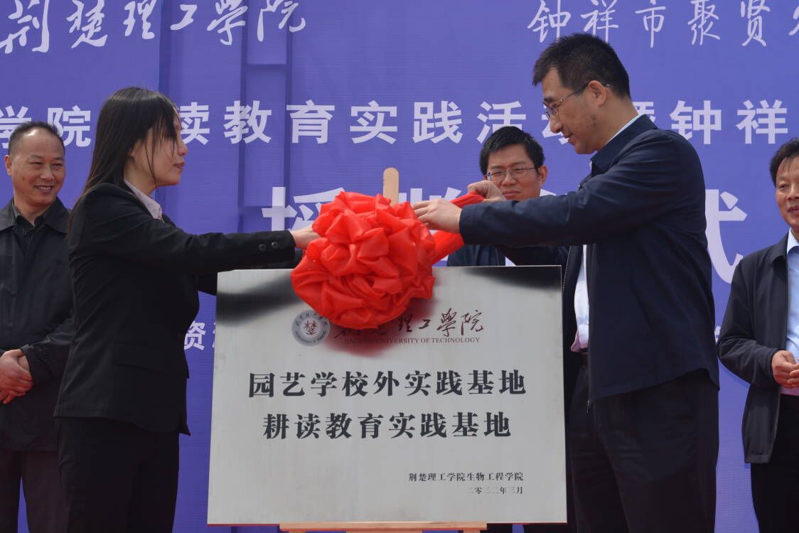 5月15日上午,在钟祥市人力资源和社会保障局牵线搭桥下,生物工程学院与钟祥市聚贤农业科技有限公司举行了校企合作“农耕文化实践教育基地”授牌仪式,并签订了产学研合作协议。生物工程学院院长施俏春及植物科学与技术专业相关师生参加了此次活动。