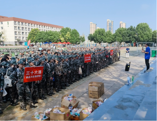 老师们还与参训学生进行了亲切交流,了解他们的训练和生活情况,叮嘱同学们要注意劳逸结合,保证身体健康。他希望同学们在军训中磨砺意志,锤炼品格,为实现中国梦、强军梦贡献自己的力量。并向我院全体新生送上中秋关怀礼物。