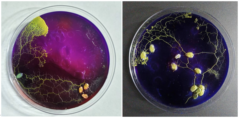 该作品秉承“天地造化兮无穷奥,怜大自然兮莫忘却”的理念,意在展现生命力的顽强和自然与数学的密切联系,依据刚丝绒泡菌强大的蔓延生长力和主动觅食的特性进行创作,以刚丝绒泡菌为菌种,燕麦为食物,水琼脂培养基为画板,将燕麦摆放在培养基上,观察黏菌生长,通过改变燕麦位置引导其生长方向后逐步得到最终作品。