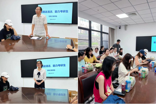 (通讯员:唐鹏)为增强同学们考研信心,生物工程学院于7月27日在新医学大楼C107会议室开展了“清凉夏日,考研慰问”活动。学院党总支书记杨晖,院长朱德艳,党总支副书记谭锡军,学工办主任郝淑颖,辅导员王海芸、余海鹏、方丹及75名备考学子参加。