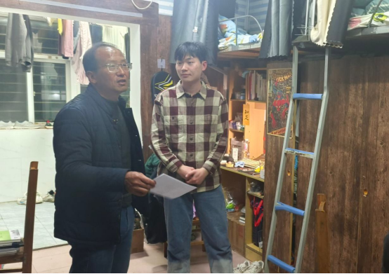 走访过程中,老师们对宿舍用电,用水以及卫生都进行了仔细的检查,并与同学们进行了亲切地交谈,全面了解学生返校后的起居情况,并且建议同学们在日常生活中要注意个人卫生、用水用电安全和财产安全等。