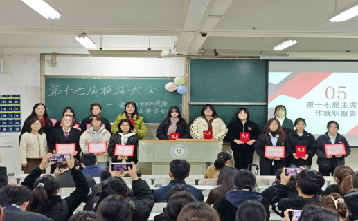 学院第十六届学生会主席屈志垚向大会作述职报告。郝淑颖老师宣读学院第十七届学生会主席团名单并为他们颁发聘书。第十七届学生会主席团成员依次向大会作就职演说。第十七届学生会主席唐鹏带领本届学生会全体成员庄严宣誓,表示一定要牢记初心,热忱奉献。郝淑颖老师最后作总结讲话,她对学院上一届分团委、学生会工作给予了充分肯定,同时指出了学院分团委、学生会工作中存在的突出问题和不足;希望新一届分团委、学生会干部认真聆听广大食生学子的心声,热情周到地为同学们服务,加强学生的自我管理、自我服务、自我教育、自我监督,努力成长为新时代知农爱农兴农新农人。
