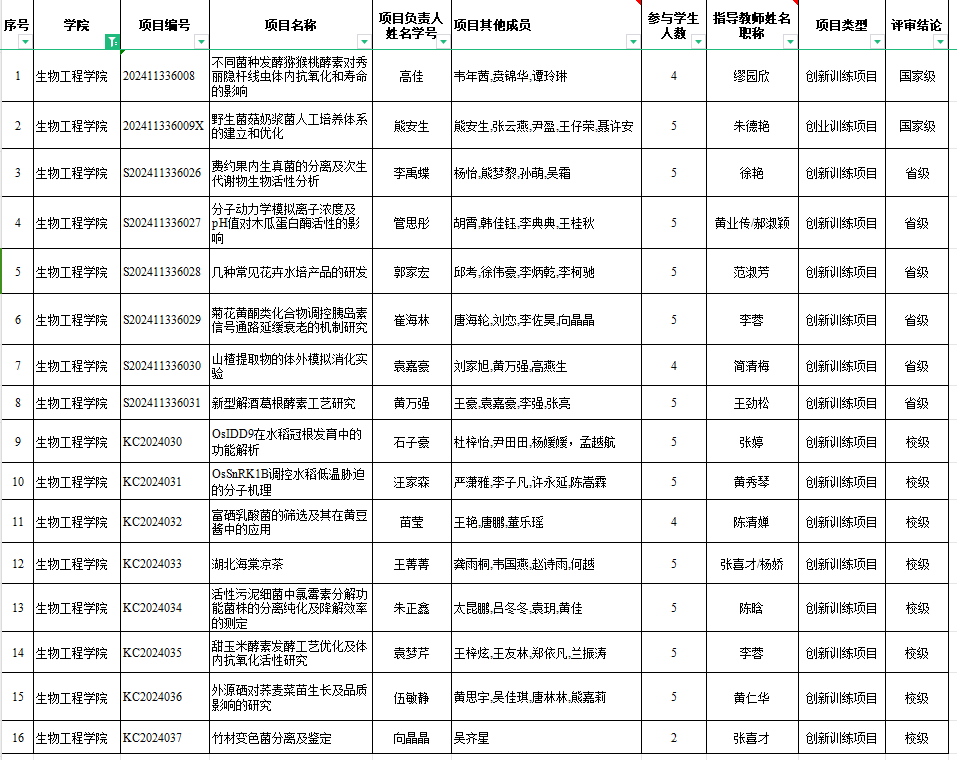 2024年大学生创新创业训练计划项目立项评审结果