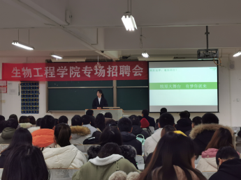 为了解决大学毕业生就业困难,缓解毕业生就业压力,1月3日上午,生物工程学院2020届毕业生专场招聘会在教学楼A2—305教室举行。学院党总支副书记刘定强、学工办主任赖艳以及全体毕业生们参加了此次招聘会。